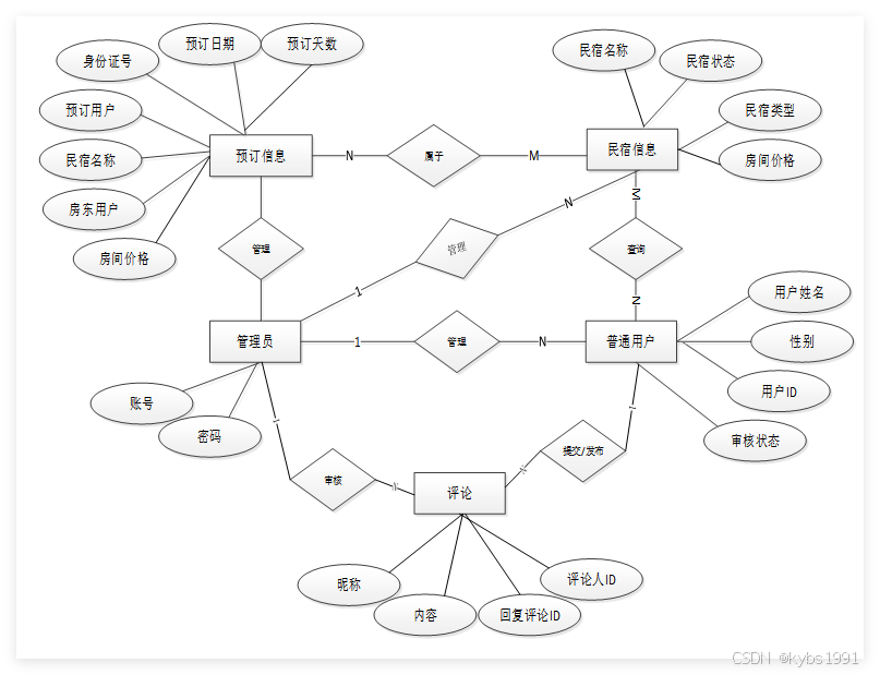 下面是整个民宿管理系统APP中主要的数据库表总E-R实体关系图。