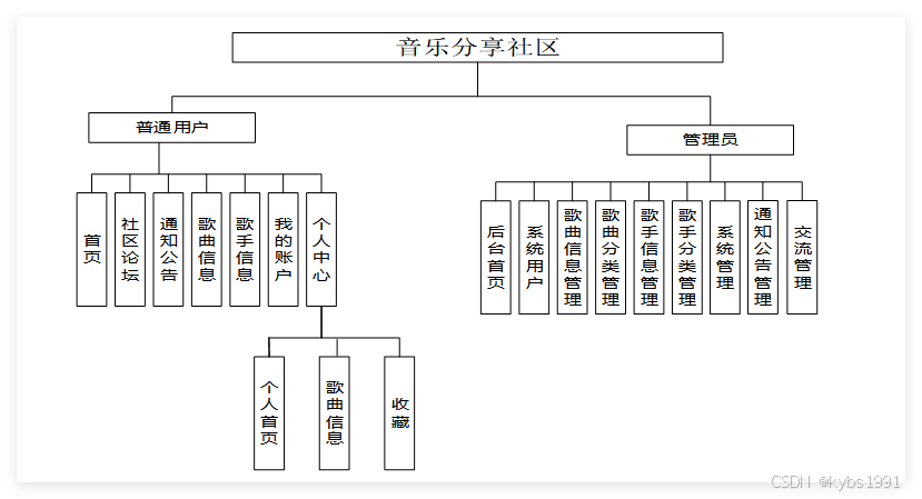 (3)用户角色与功能模块划分:根据系统的设计目标,确定系统的用户角色和相应的功能模块。在音乐分享社区系统中,可以划分为管理员和普通用户两个角色。管理员负责管理用户信息、处理用户提交的音乐和论坛交流等事务;普通用户可以上传自己的音乐作品、参与论坛交流、收藏喜欢的音乐等。