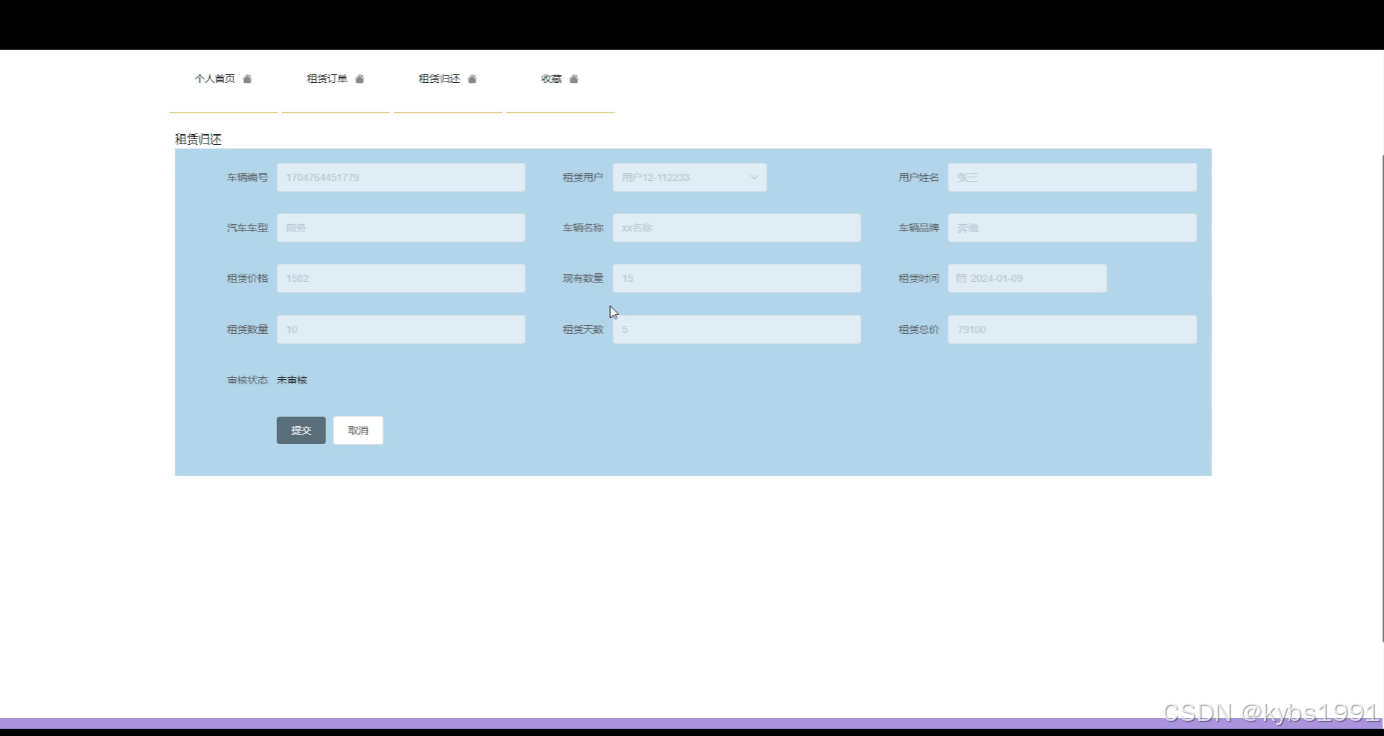 - 个人中心:用户可以查看自己的租赁订单、归还订单、收藏的车辆信息等,并进行相关操作,如订单查询、查看历史记录等。