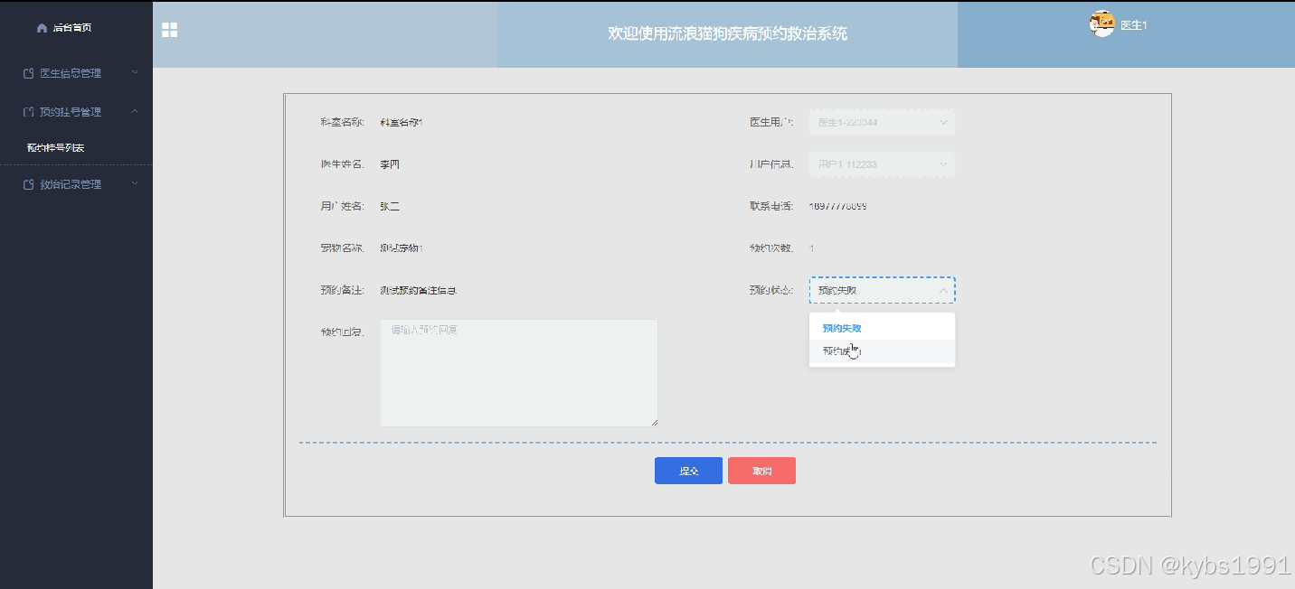 医生可以查看用户提交的挂号预约信息进行就诊处理并进行添加救治记录,管理员可以对挂号预约数据进行维护管理。