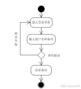 用户可进行登录使用更多功能,首先进入用户登录界面,输入用户账号和密码,后台对账号和密码信息进行核对验证,验证成功则页面直接显示登录用户昵称代表登录成功,否则返回用户登录界面。用户登录活动图如下图。