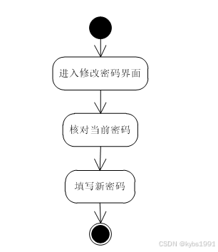 用户功能界面可对自己的密码进行修改。进入修改密码界面后核对当前密码,核对成功后填写新密码。修改密码活动图如下图所示。