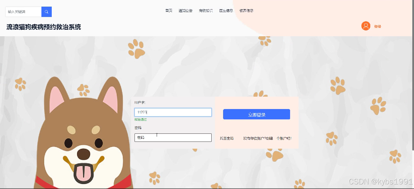 - 登录:使用流浪猫狗疾病预约救治系统前是需要用户登录个人账号。