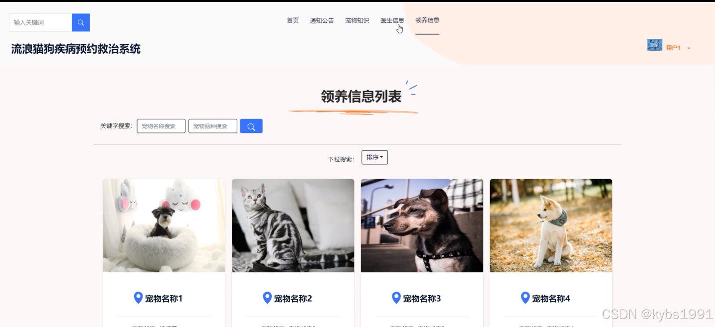 - 领养信息:用户可以浏览发布的宠物领养信息,了解领养宠物的基本情况和领养流程,可以根据宠物种类和地区进行搜索和筛选,申请领养喜欢的宠物并了解领养流程。