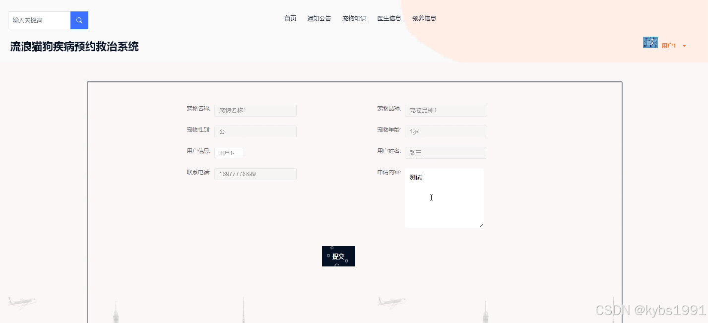 - 宠物知识;前台用户可以浏览宠物相关的知识文章和资讯,包括宠物护理、饲养知识、常见疾病预防等,同时可以根据分类和关键词搜索感兴趣的宠物知识内容,提升对宠物健康管理的认知水平。