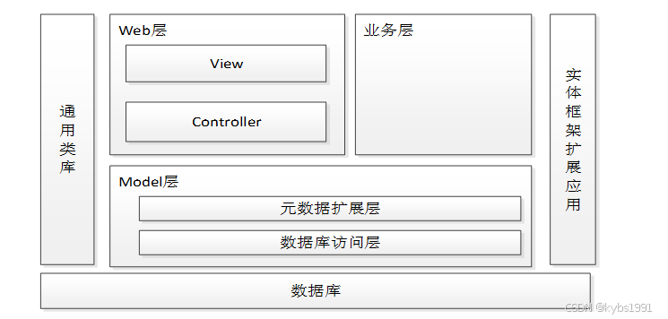 本系统架构设计主要分为可以3层,主要有Web层,业务层,Model层。其中web层还包括View层和Controller层,Model层包括元数据扩展层和数据访问层。