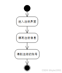 用户管理针对所有用户和管理员。未注册用户点击注册,进入注册页面填写新用户信息,得到自定义生成账号后,注册完成。未注册用户注册的活动图如下图所示。