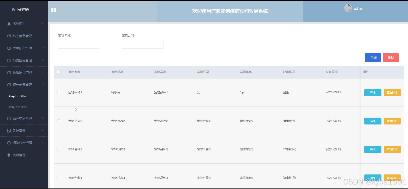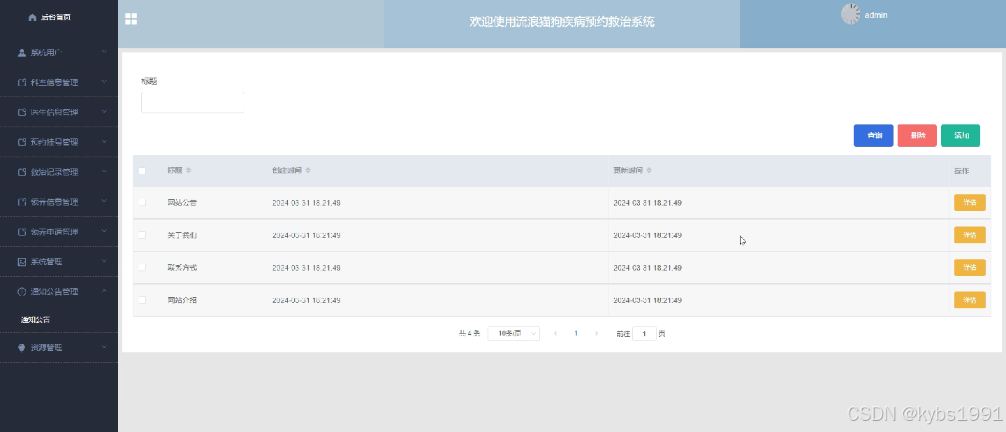 - 救治记录管理: 管理员可以管理宠物的救治记录进行归类、检索和统计分析。