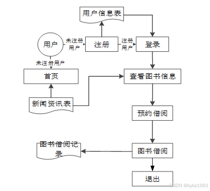 分析完图书管理系统的数据流,那么接下来我们来看系统的业务流程,图2-4就是业务流程图: