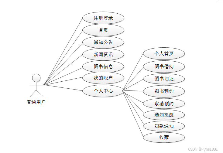 图2-1 图书管理系统普通用户角色用例图