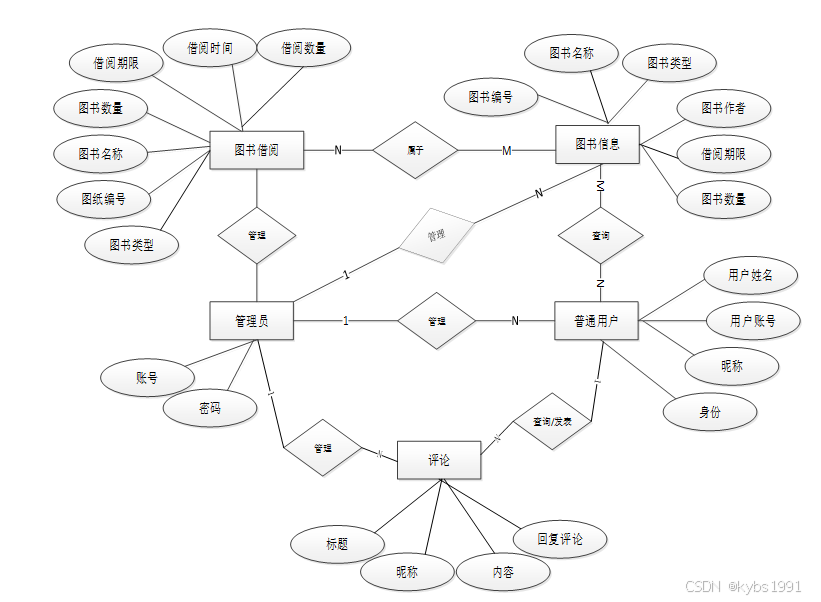 下面是整个图书管理系统中主要的数据库表总E-R实体关系图。