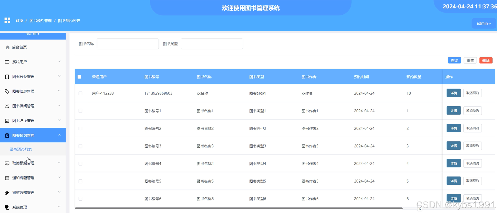 图4-13 图书预约管理界面界面图