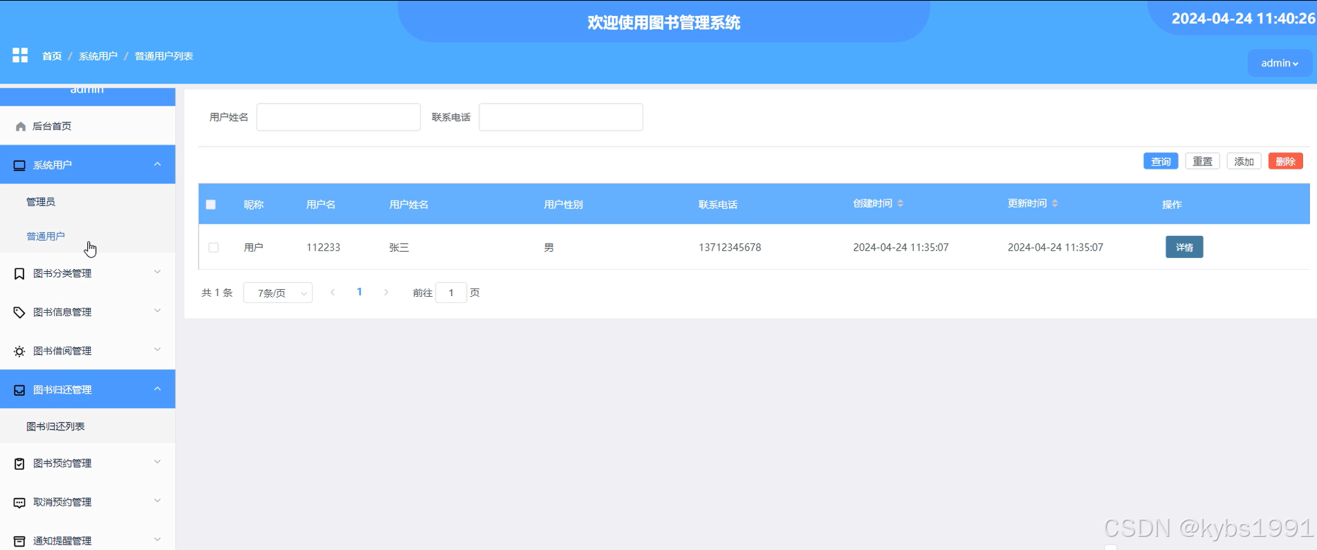 (2)系统用户:管理员点击“系统用户”菜单可以对系统中存在的用户进行管理,包含了管理员用户和普通用户。