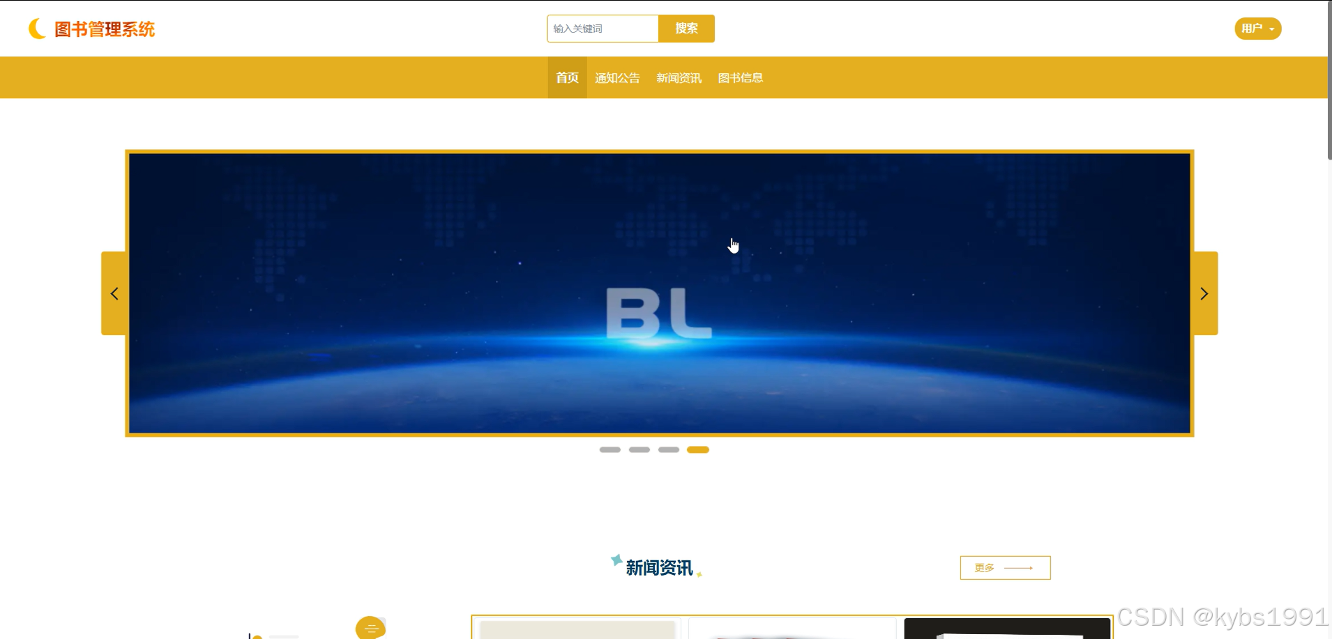 (2)首页:图书管理系统的首页信息包含了首页、通知公告、新闻资讯、图书信息等。