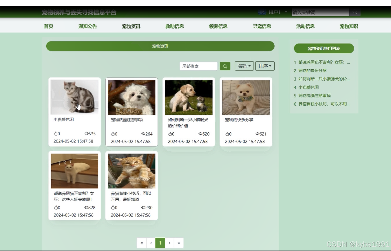 关键词:宠物领养与丢失寻找信息平台;Java;Spring Boot框架