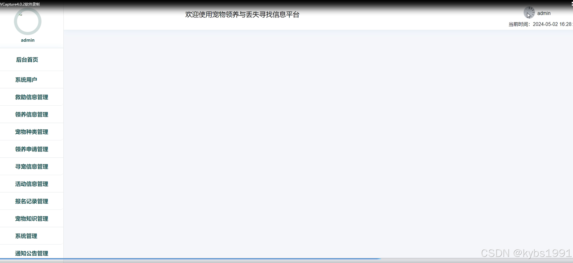 进入系统后首先要进行登录,验证你的身份,赋予你不同的权限。当你成功登录后,页面会有多个板块,分别是后台首页、系统用户、救助信息管理、领养信息管理、宠物种类管理、领养申请管理、寻宠信息管理、活动信息管理、报名记录管理、宠物知识管理、系统管理、通知公告管理、资源管理。里面界面简单易懂,根据标示可以直接进行方便快捷的操作。