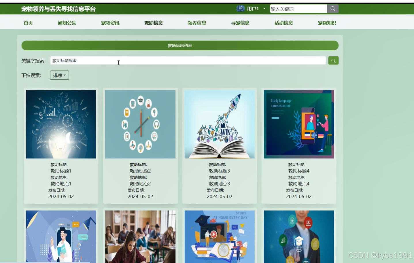 | 预期结果 | 页面显示包含有搜索关键字的领养信息 |