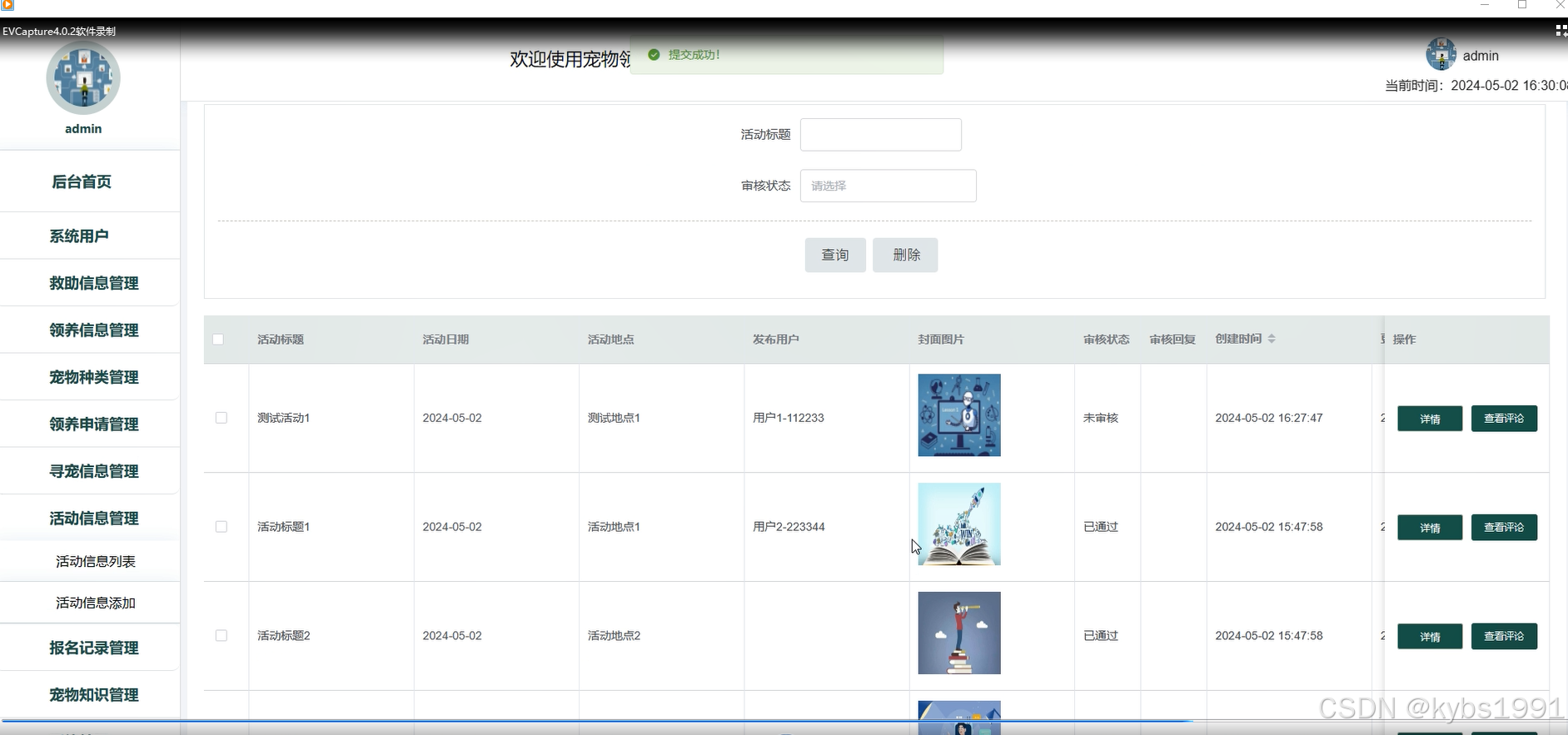 管理员可以管理平台上发布的活动信息,包括添加、编辑、删除活动信息,确保活动信息的及时更新和展示。活动信息管理界面如下图所示。