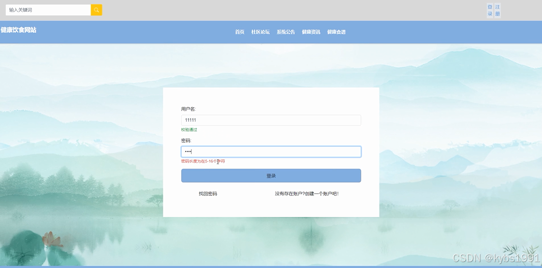 首页:普通用户登录后,可以在首页浏览健康饮食网站的系统公告、健康食谱、健康