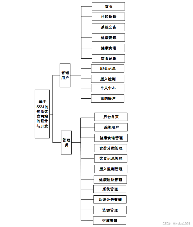 健康饮食网站划分为了普通用户模块和管理员模块这两大部分。