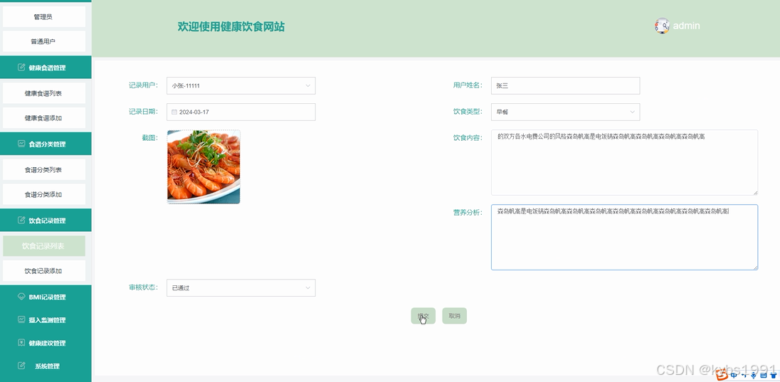 图4.5健康食谱管理界面图