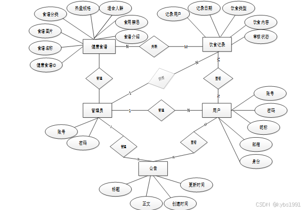 下面是整个健康饮食网站中主要的数据库表总E-R实体关系图。
