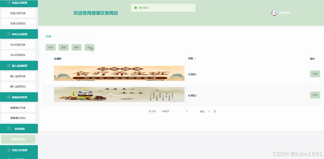 系统管理:管理员可以对系统前台展示的轮播图管理进行增删改查,方便用户进行查看。界面如下图所示。
