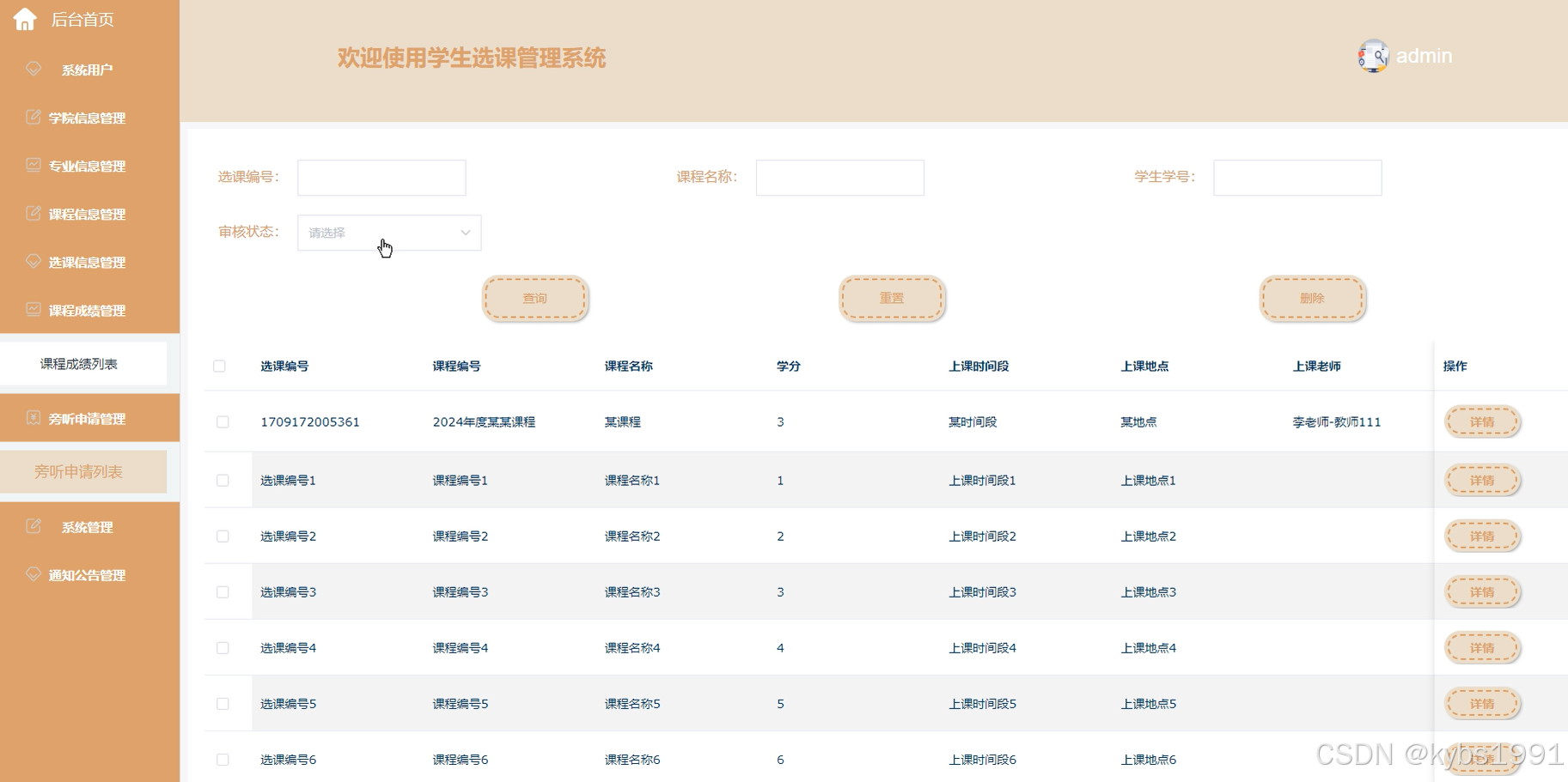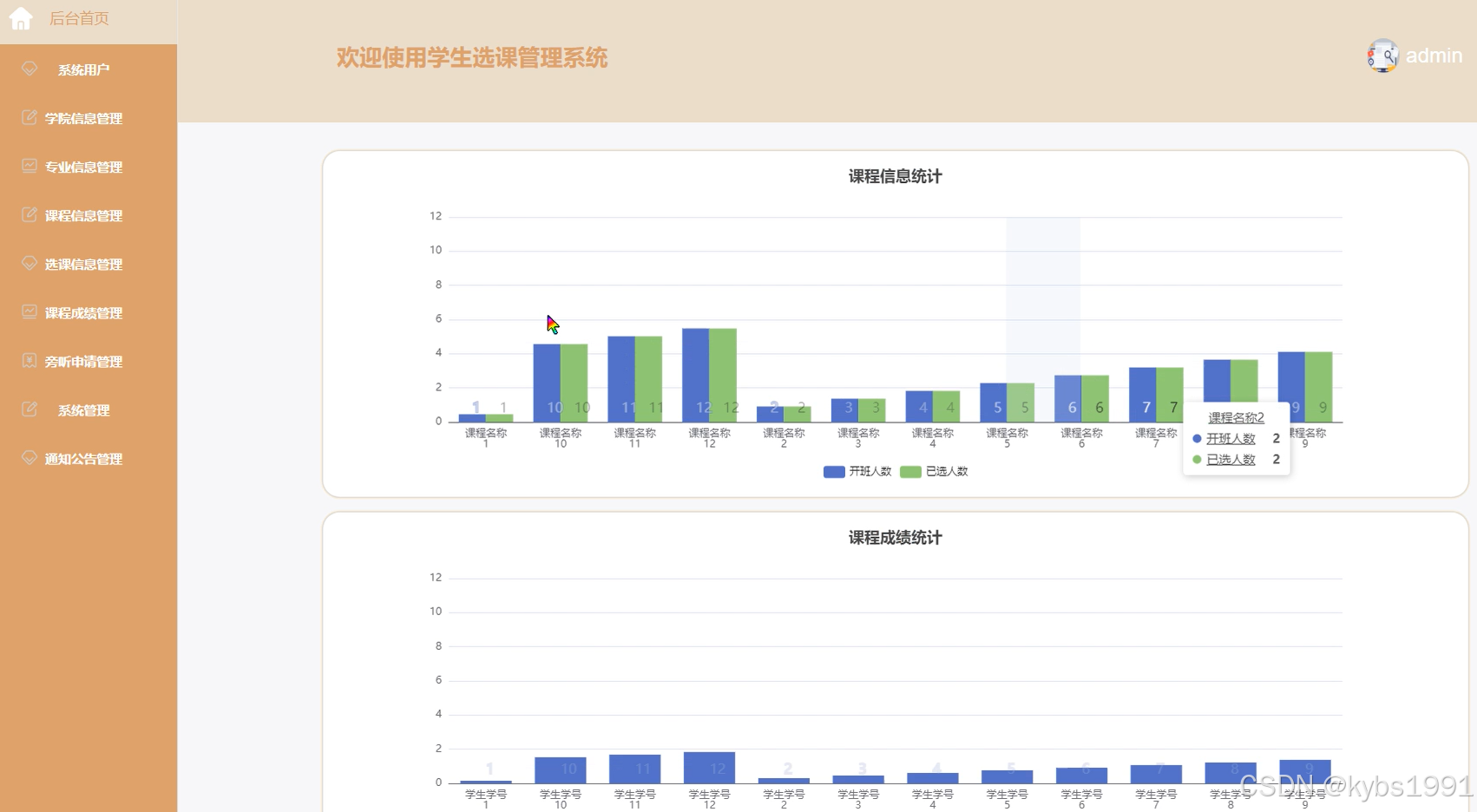 3、功能的完善性:拥有后台首页、系统用户、学院信息管理、专业信息管理、课程信息管理、选课信息管理、课程成绩管理、旁听申请管理、系统管理、通知公告管理等模块的修改维护操作。