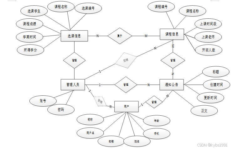 通过学生选课管理系统的功能进行规划分成几个实体信息,实体信息将通过ER图进行说明,本系统的主要实体图如下: