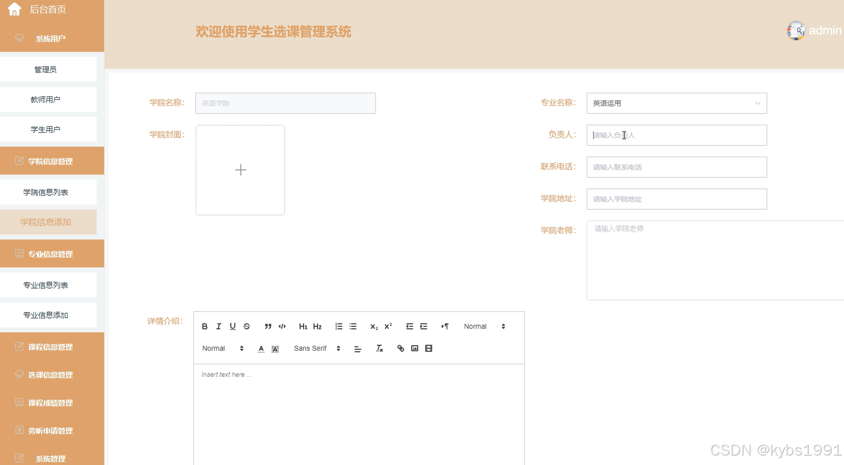 图5-5添加学院信息界面图