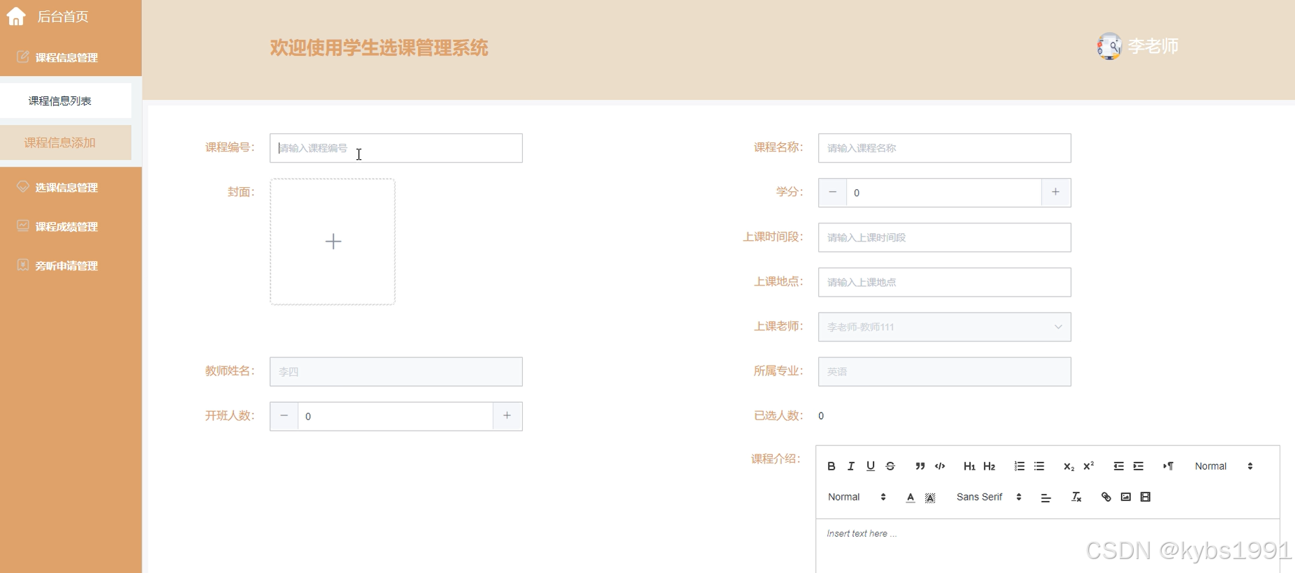 图5-13课程信息添加界面图