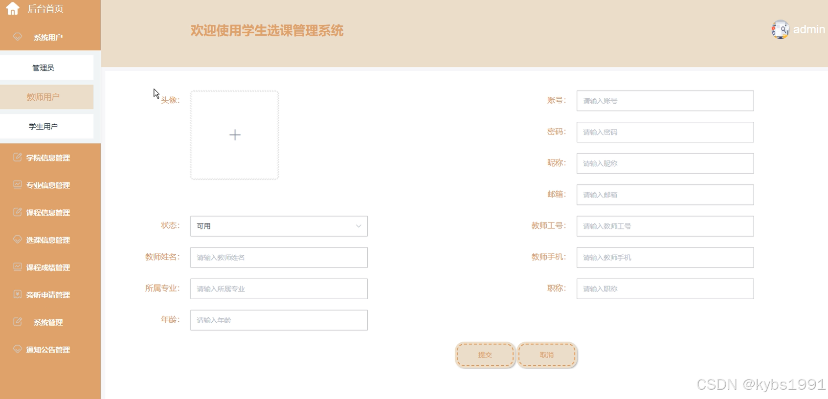 图5-3教师用户添加界面图