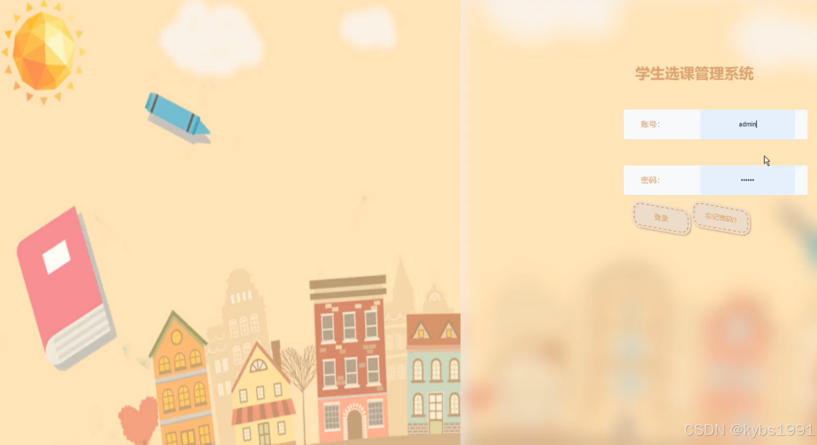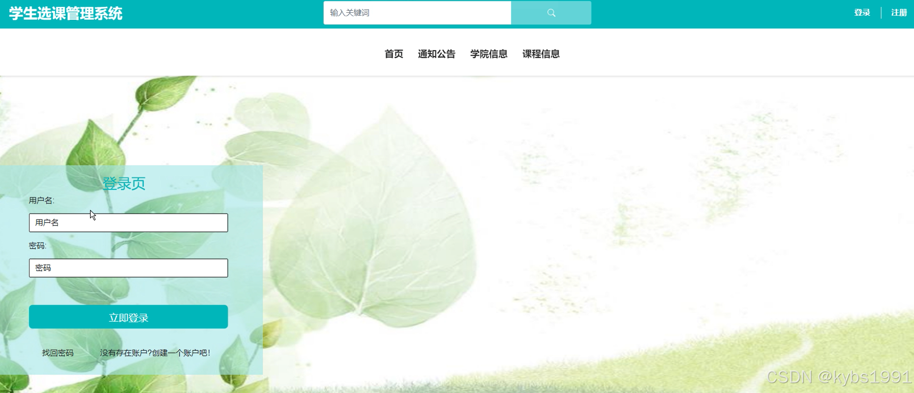 学生用户登录学生选课管理系统,需先注册,在登录页面输入用户名、密码进行登录,如下图所示。