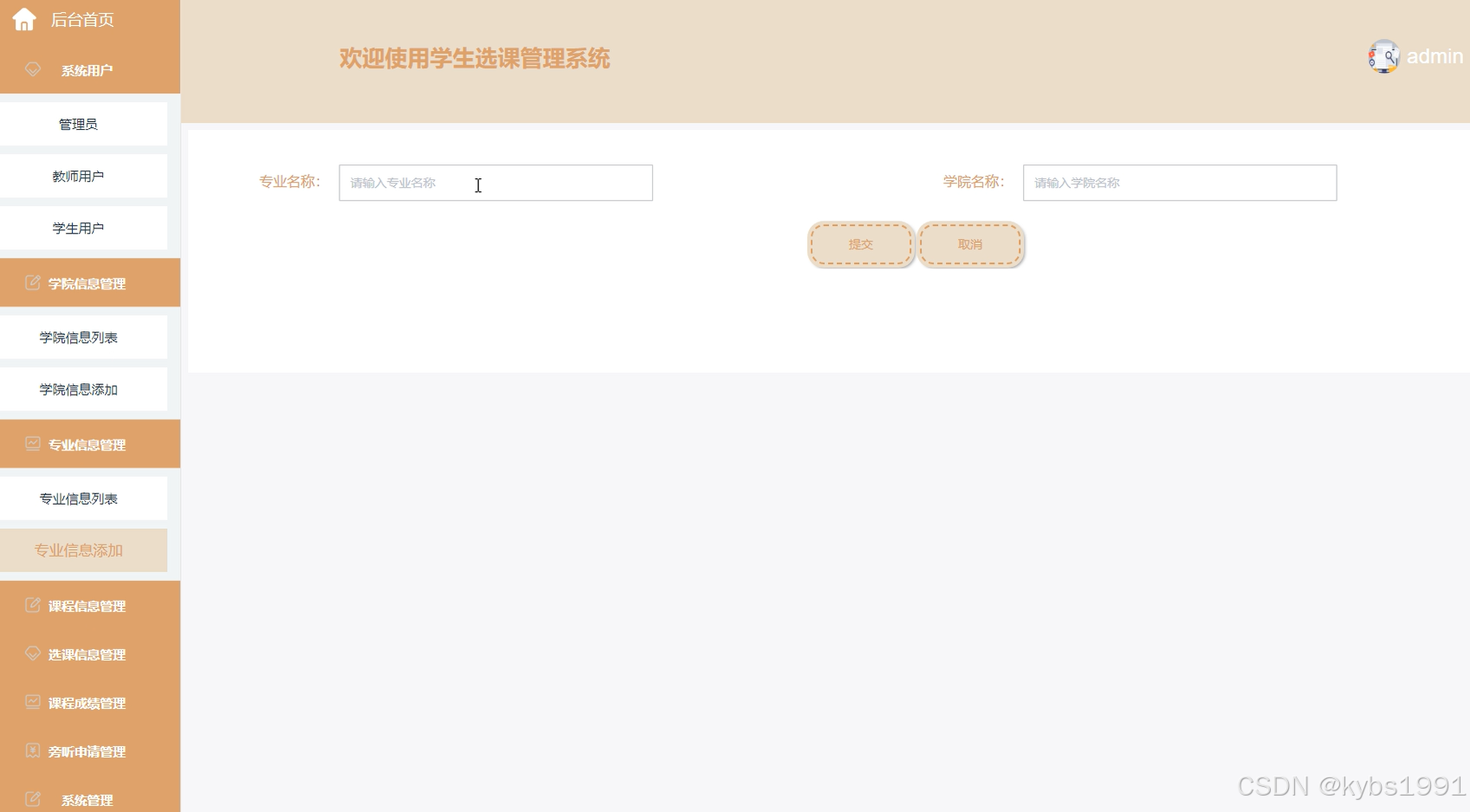 图5-6专业信息添加界面图