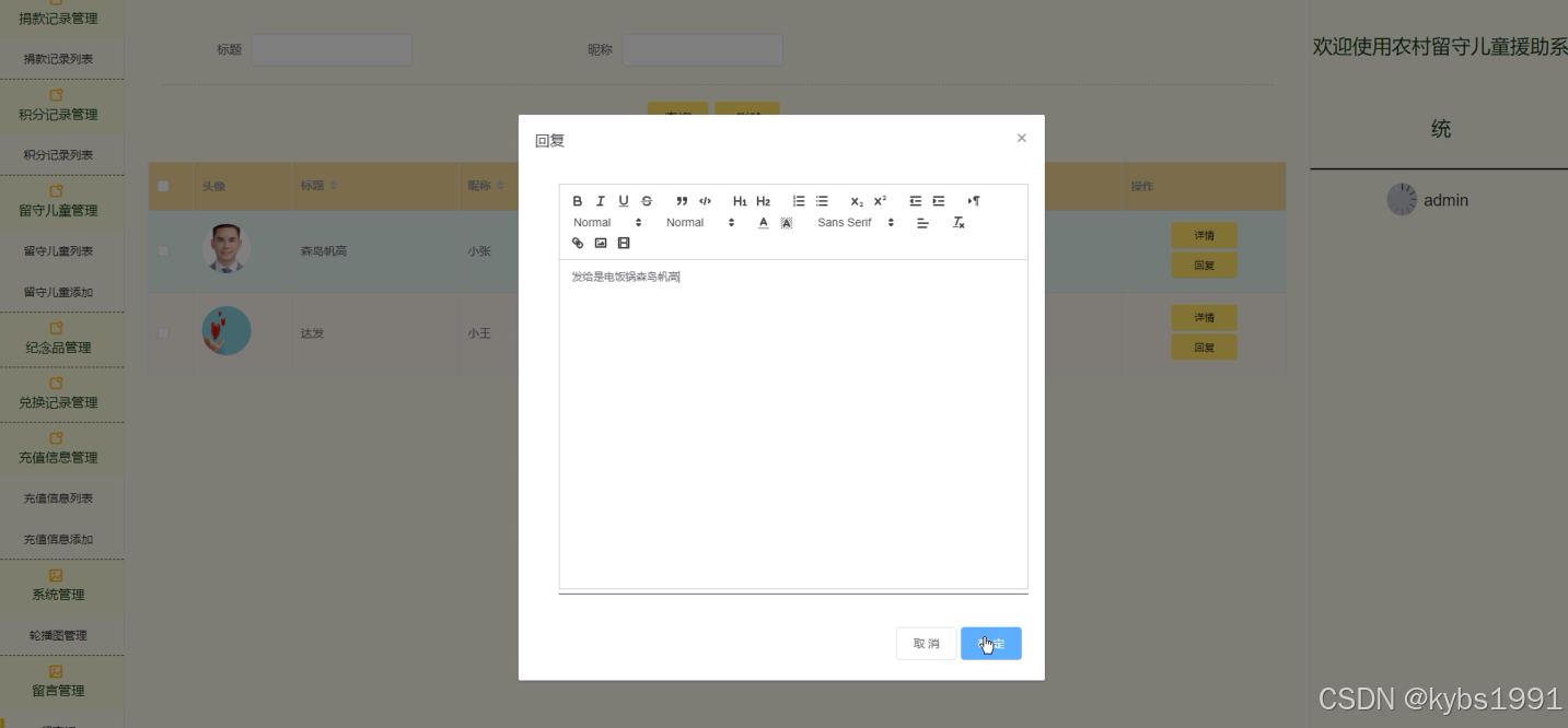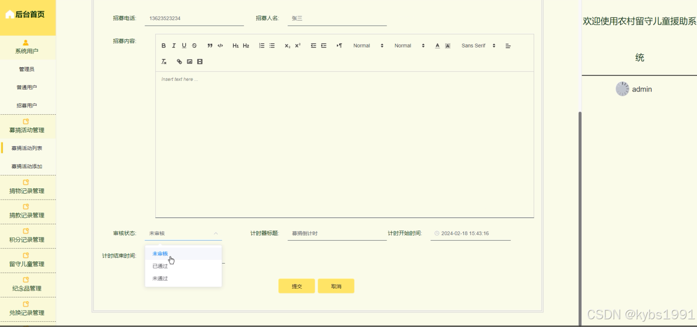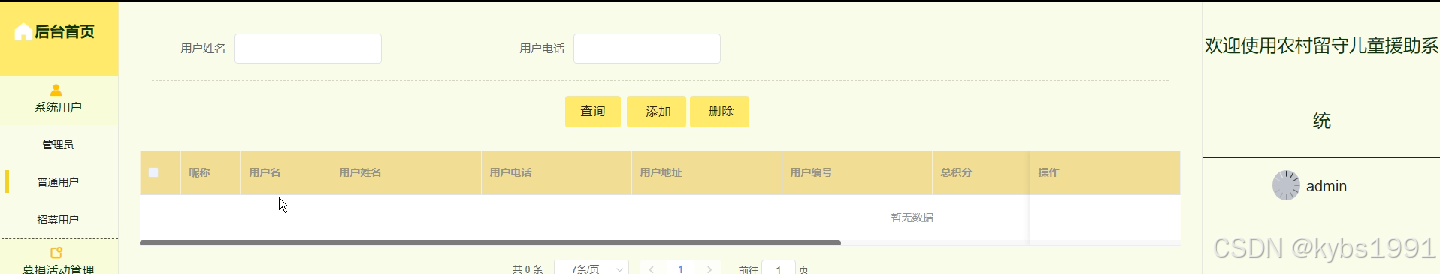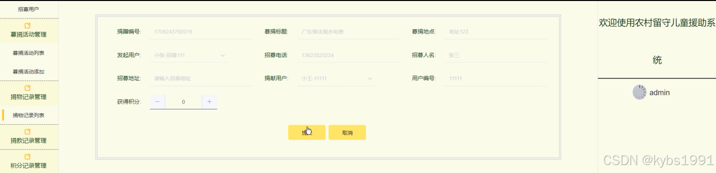 5.管理员功能,管理员可以对用户或者募捐活动、捐款记录、留守儿童等进行管理。