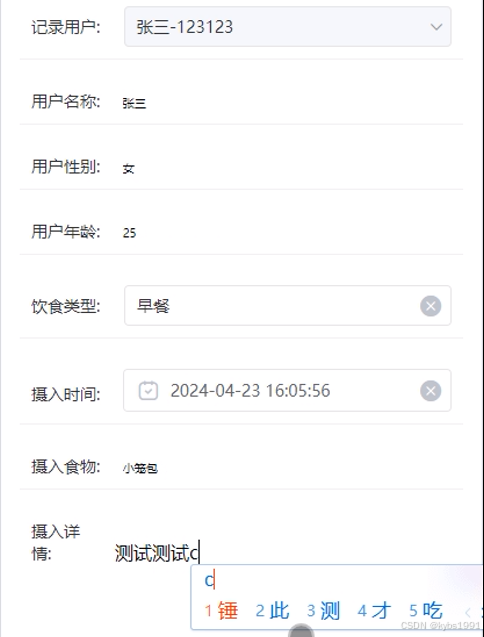 | 饮食建议添加模块测试 | 饮食建议家添加成功的情况 | 在饮食建议的页面中点击添加,输入饮食建议相关信息,输入正确的信息后然后点击“提交”按钮。 | 提示添加成功 | 正确 |