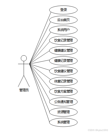 基于微信小程序的健康记录规划系统中管理员角色用例图如图2.2所示: