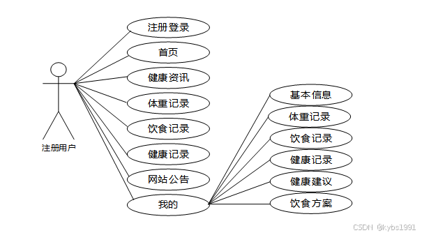 基于微信小程序的健康记录规划系统中注册用户角色用例图如图2.1所示: