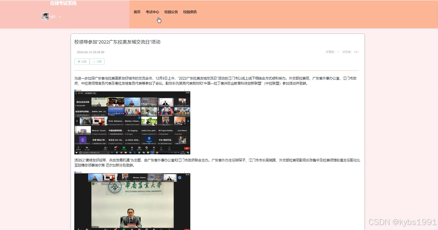 在线考试系统的研究旨在设计和开发一个基于互联网技术的在线测试平台,为教育机构提供便捷、高效的课堂测验和评估服务。该系统通过结合教育理论与技术手段,提供多种题型、自动评分和实时反馈等功能,以促进学生学习效果的提升。springboot在线考试系统主要功能模块包括系统用户、联系老师管理、留言管理、系统管理、考试管理等,采取面对对象的开发模式进行软件的开发和硬体的架设,能很好的满足实际使用的需求,完善了对应的软体架设以及程序编码的工作,采取MySQL作为后台数据的主要存储单元,采用springboot框架、Java技术、Ajax技术进行业务系统的编码及其开发。