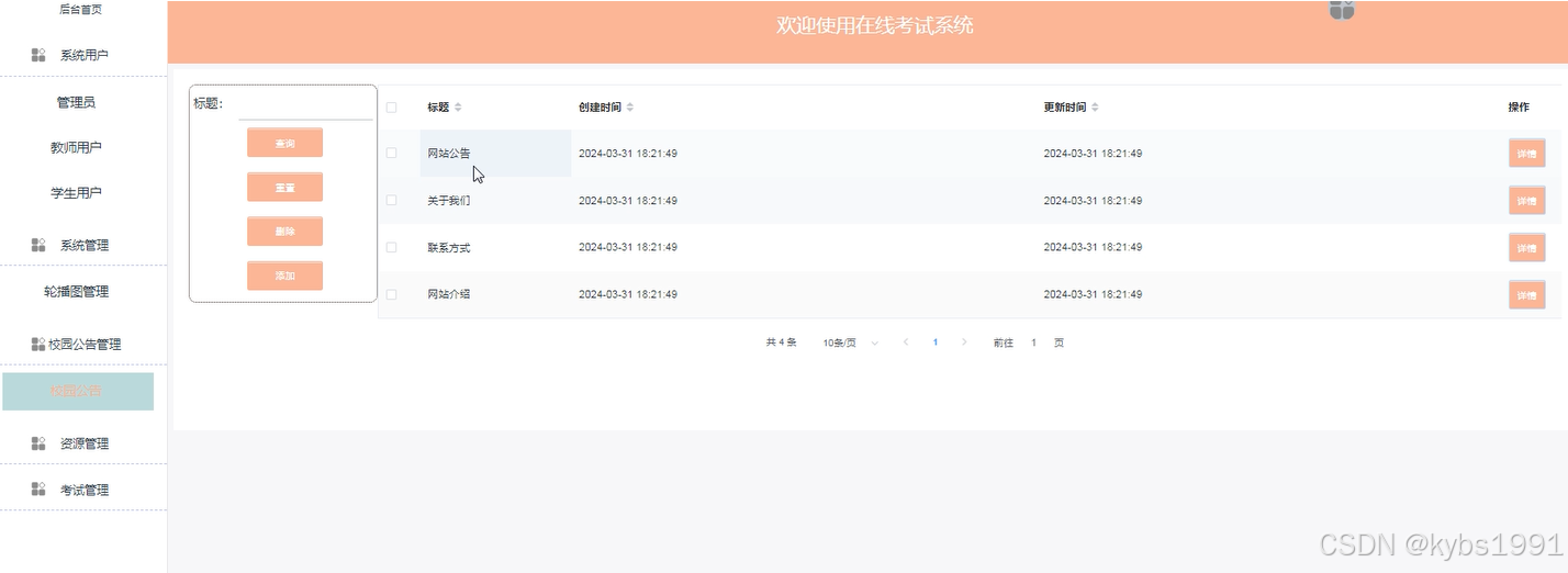 图4.10校园公告管理界面