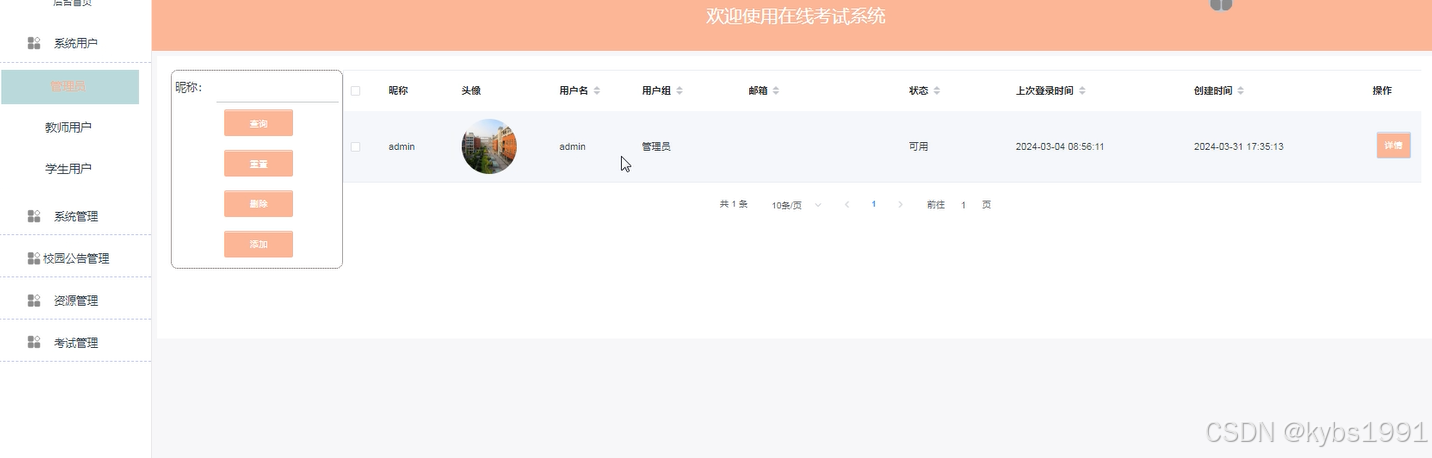 考试管理:对考试信息进行维护管理。