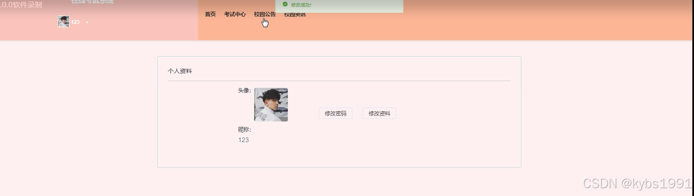 我的账户:用户点击我的账户,可以对学生基本资料进行修改与密码的修改。