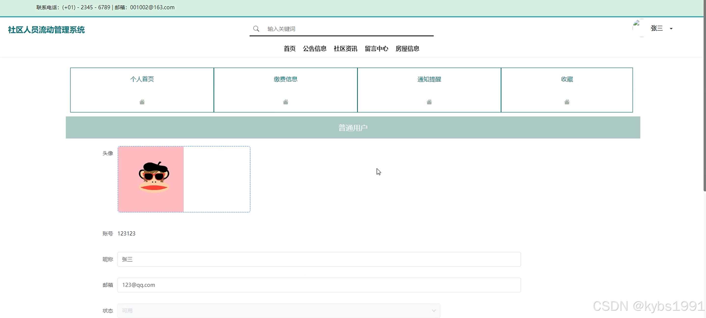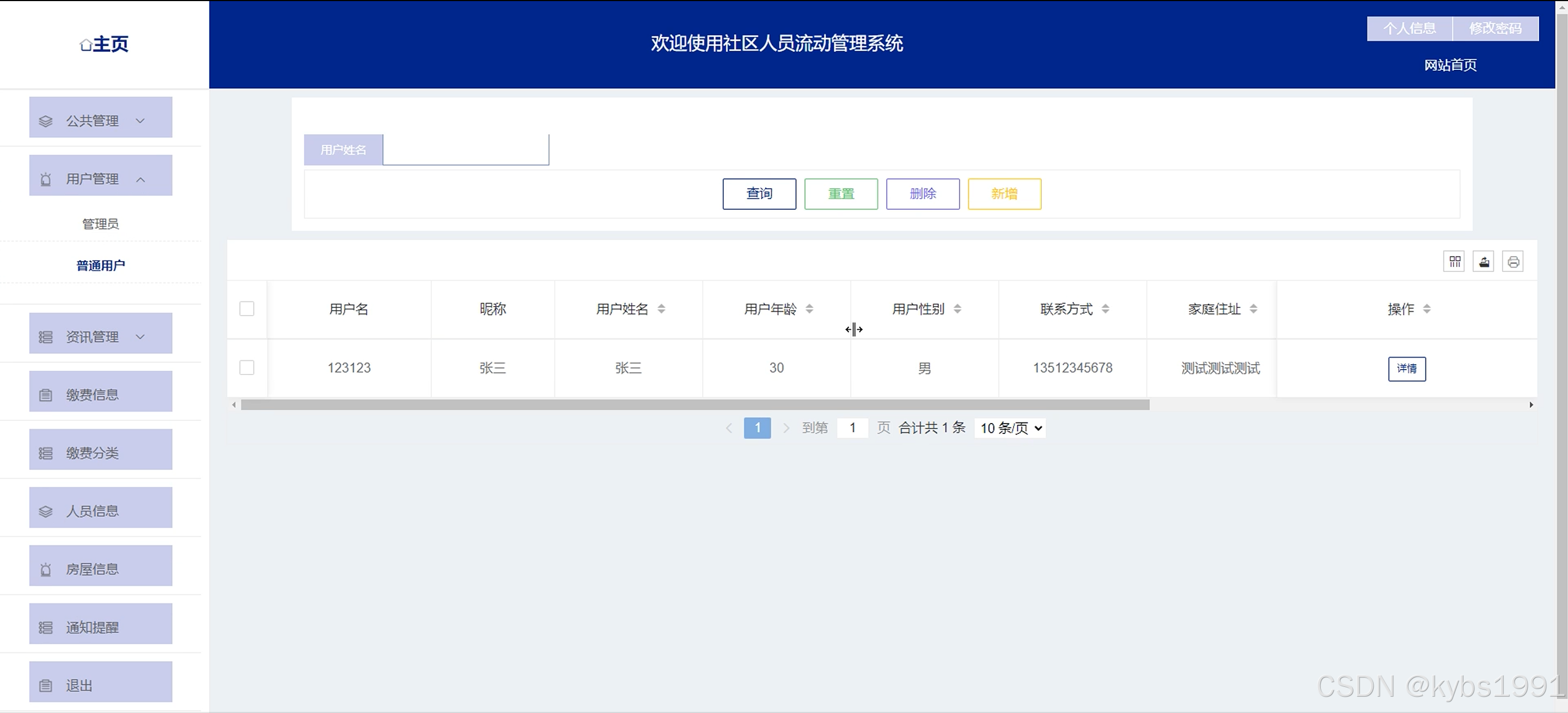 社区人员流动管理系统划分了普通用户和管理员这两大部分。
