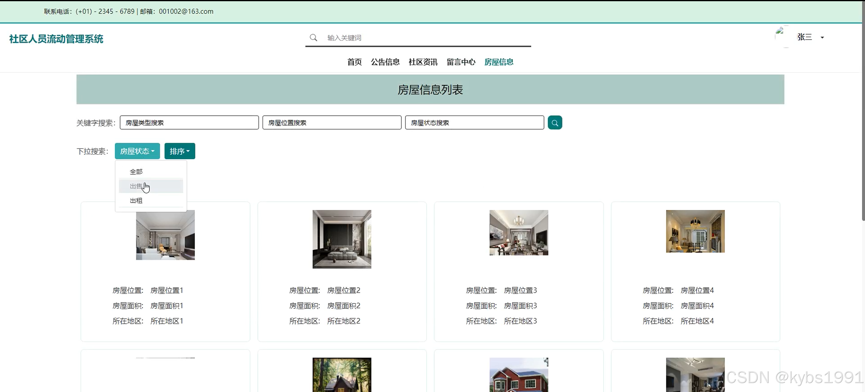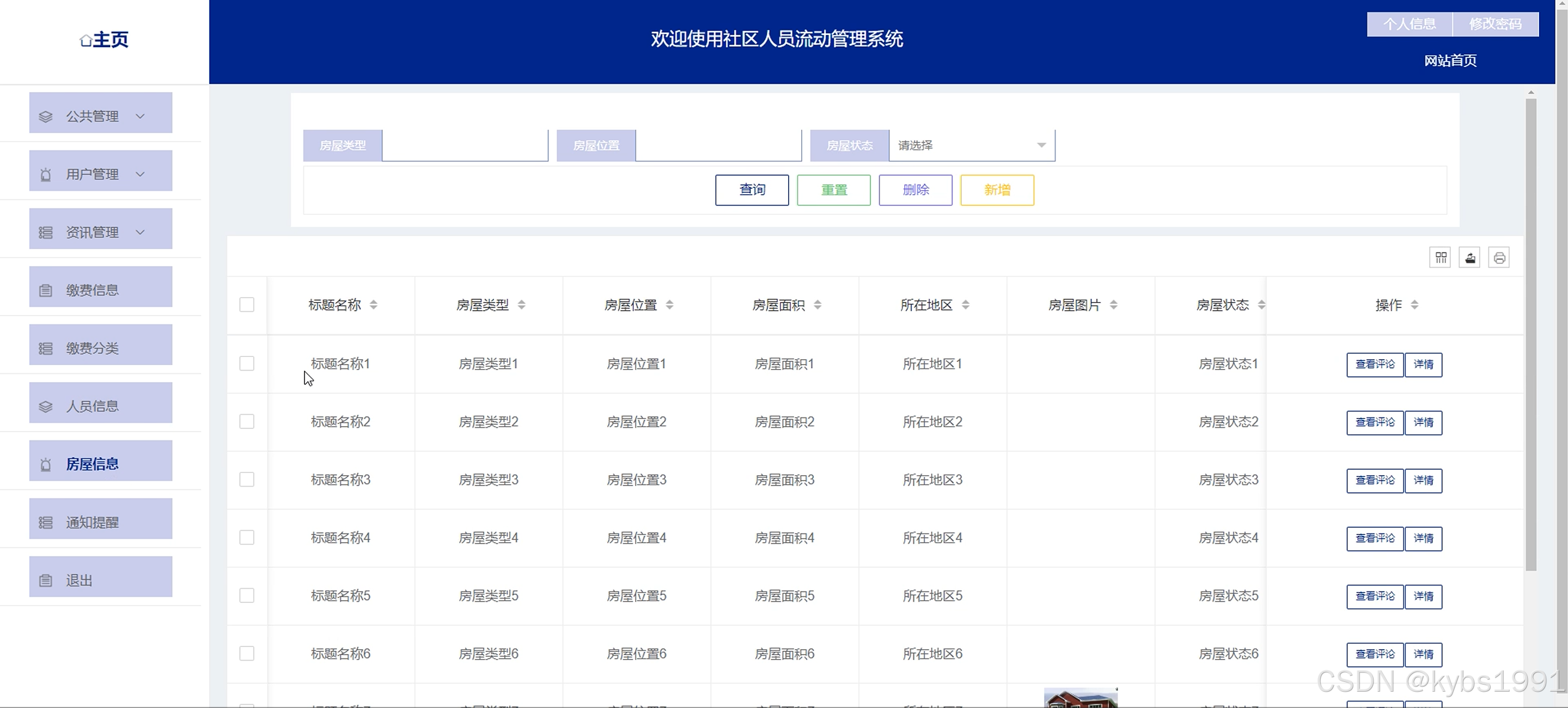 房屋信息管理:管理员可以管理社区内的房屋信息,如出租、出售等。包括增删改查等操作。