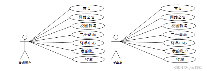 按照大学生二手交易平台的角色,我划分为了普通用户模块、二手卖家用户模块、管理员管理模块这三大部分。