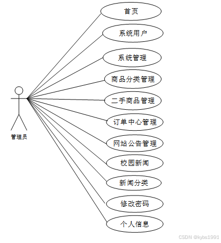 web后台管理上的管理员是维护整个大学生二手交易平台中所有数据信息的。管理员角色用例如图2-3所示。