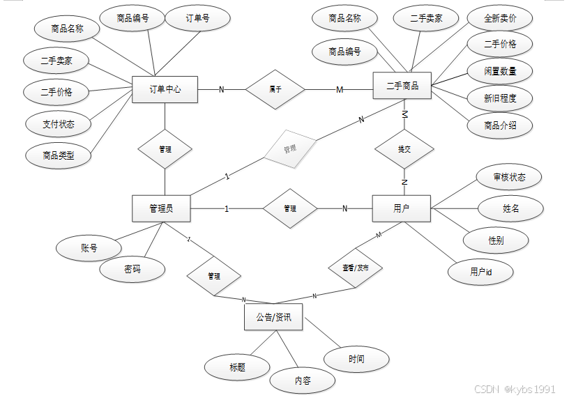 下面是整个大学生二手交易平台中主要的数据库表总E-R实体关系图。