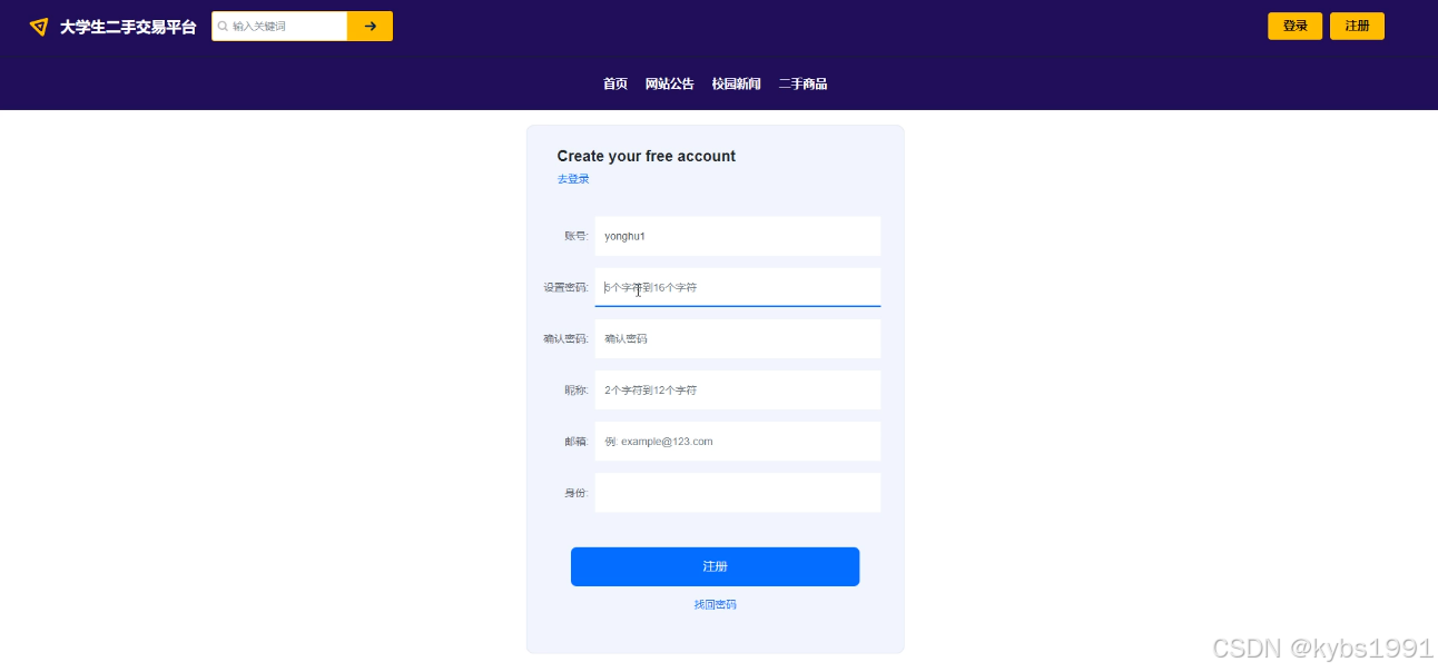 - 用户注册登录:用户注册为用户并登录大学生二手交易平台;用户对个人信息的增删改查,比如个人资料,密码修改。