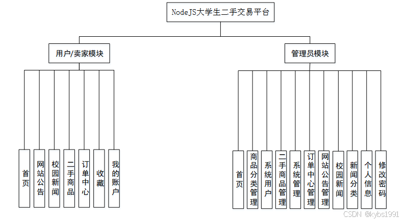 大学生二手交易平台是中需要存储不少二手商品,其模块功能结构,具体的结构图如下:
