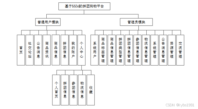 拼团购物平台我划分为了普通用户管理模块和管理员模块这两大部分。